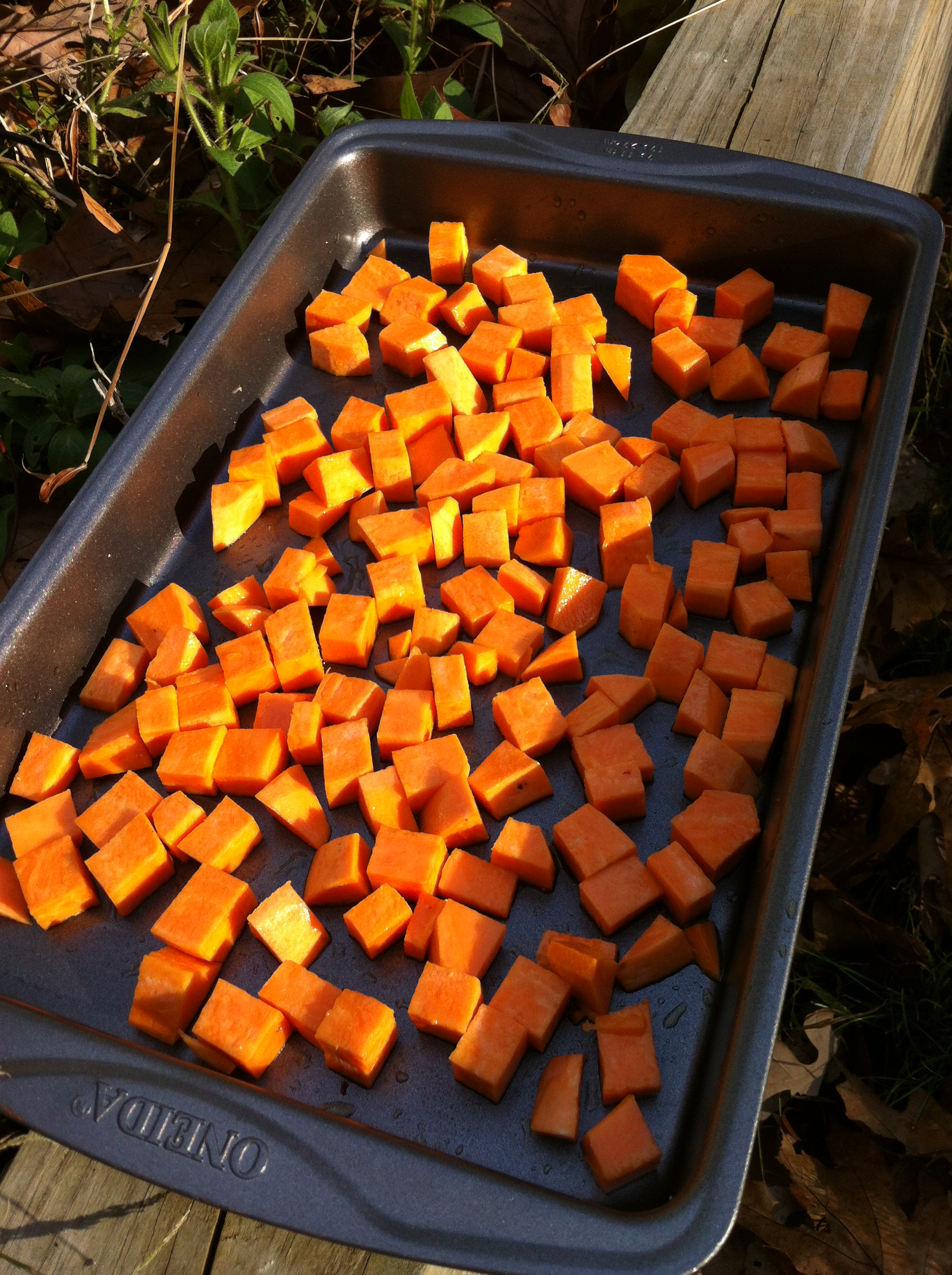 1 medium Sweet Potato cut into 1/2″ chunks, all about the same size