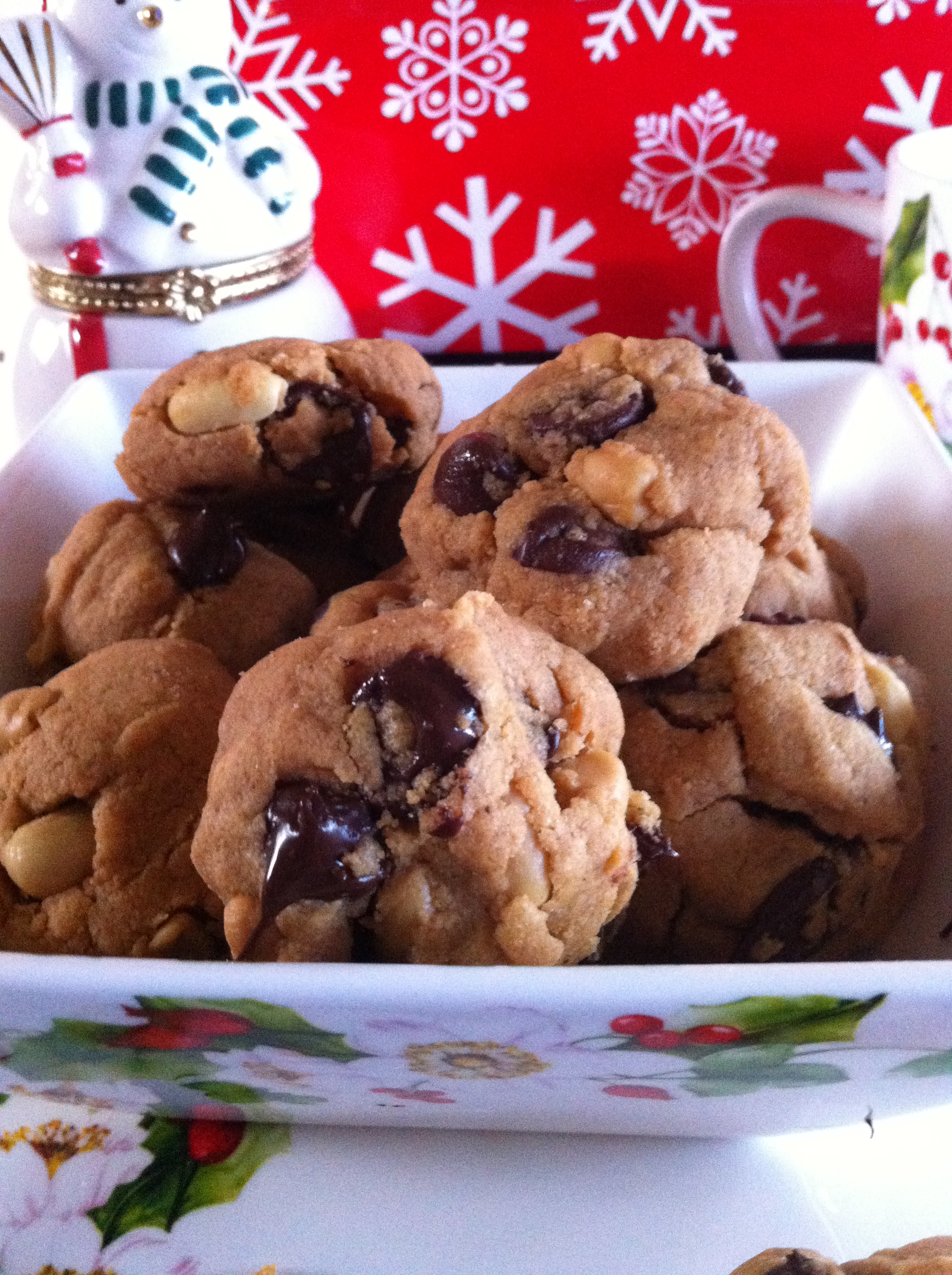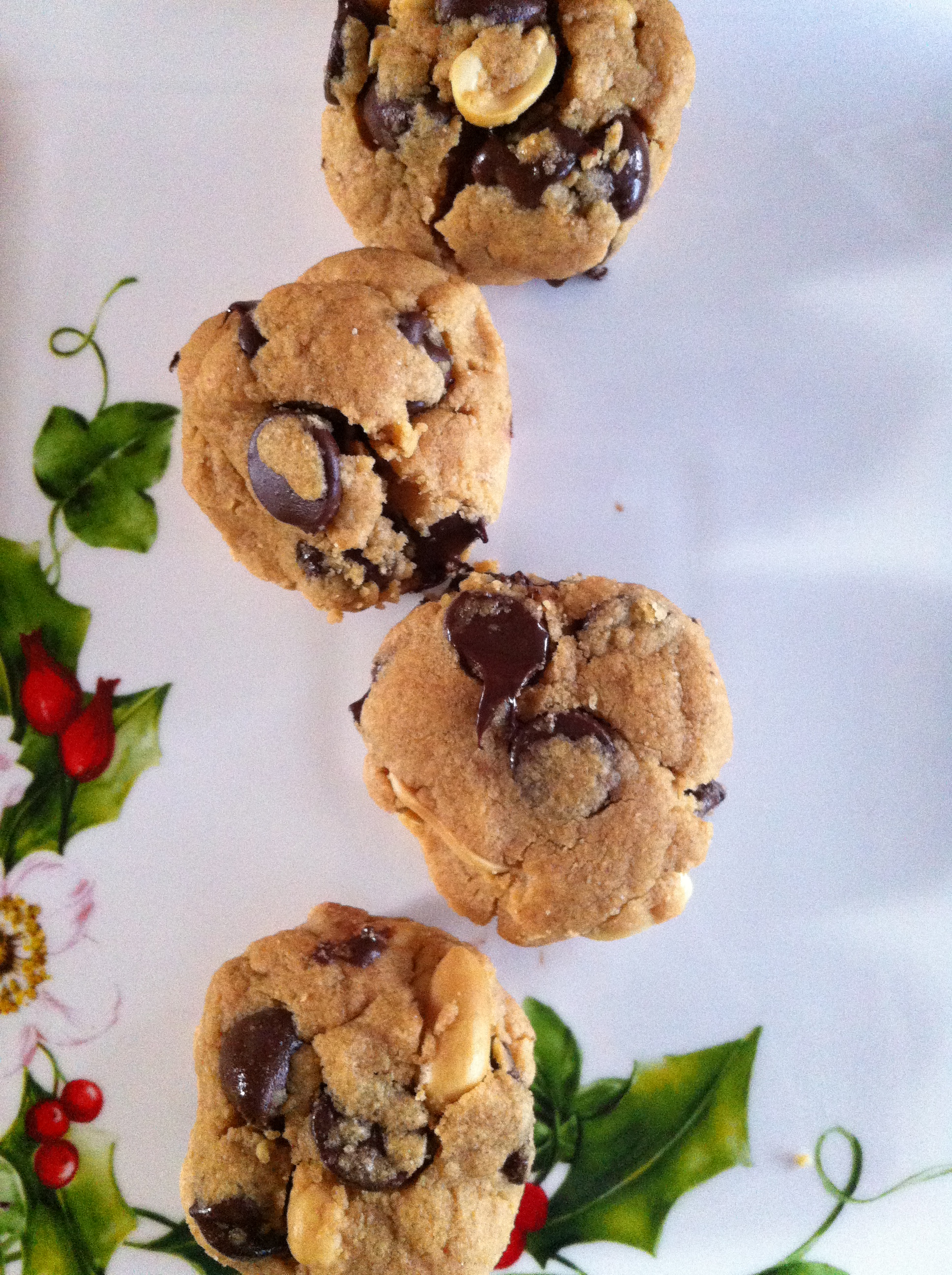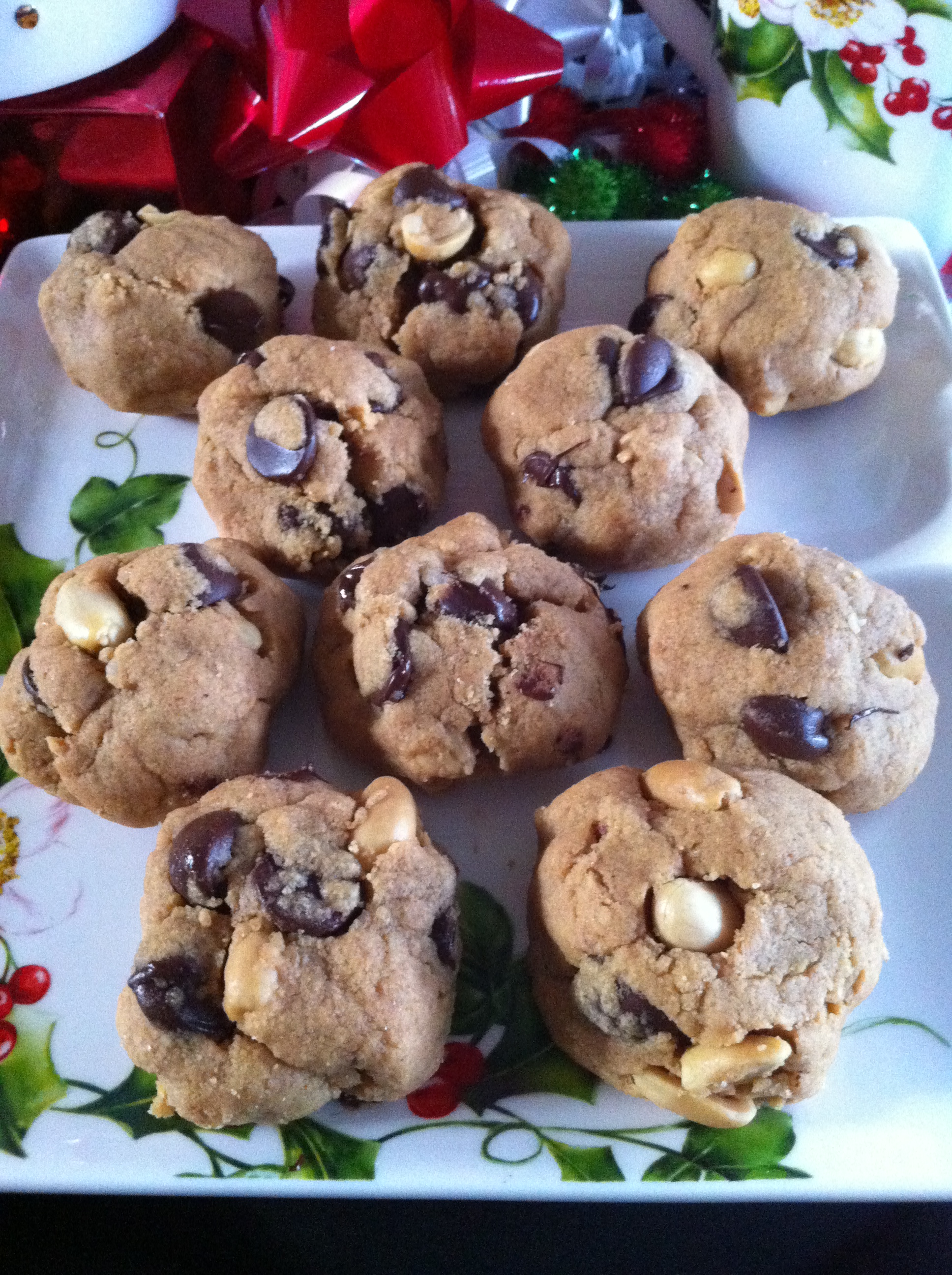 The third day of Christmas Cookies brings us the timeless combination of Peanut Butter and Chocolate! This recipe is gluten free for the simple reason that it contains no flour of any kind. Yes, you read that right… NO FLOUR. I did not have to adapt this cookie recipe because it was already gluten free. I always tweak my recipes, so this one is mine, but for the most part, it remains pretty true to the original recipe.