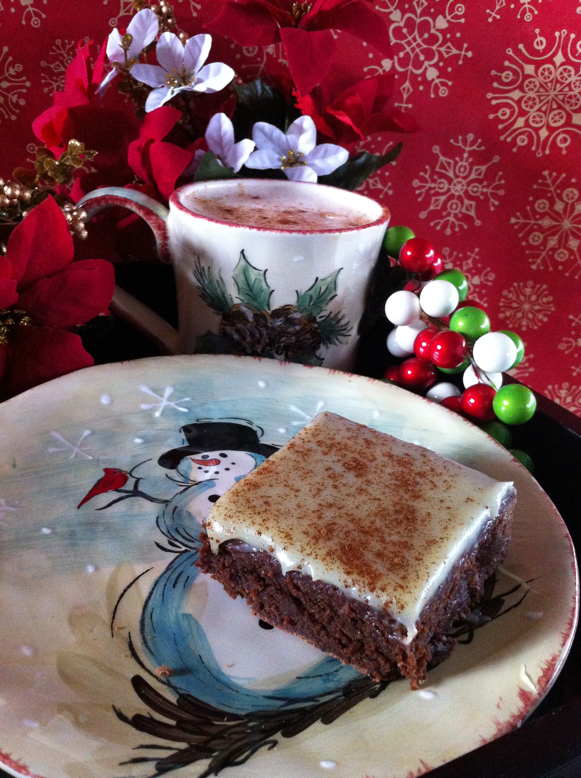 The 7th Day of Christmas Cookies brings you coffee in a delicious dessert, Cappuccino Brownies with White Chocolate Ganache.